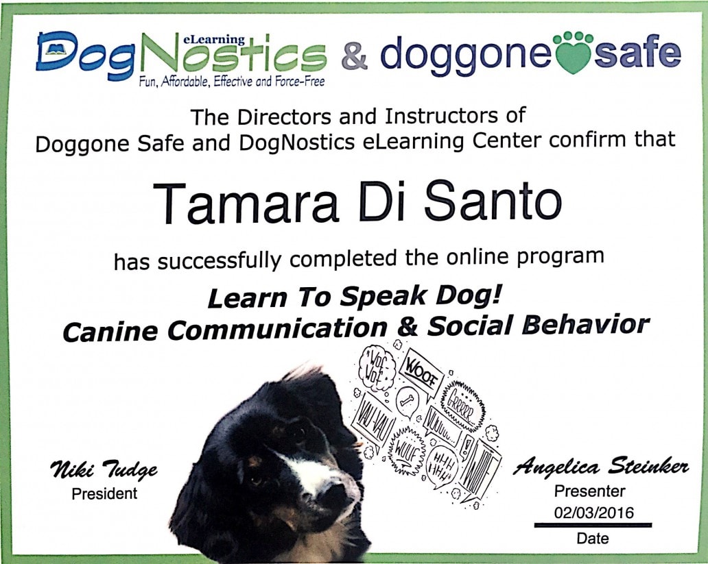 - Certified PPG Dog Nostics Trainer (Pet Professional Guild)