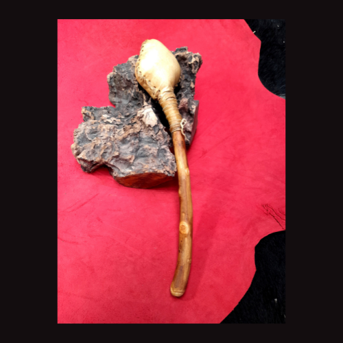 Handcrafted with intention, this sacred tool is designed to help you find inner balance, clarity, and connection, through using natural materials like deer rawhide and cherrywood for the handle.