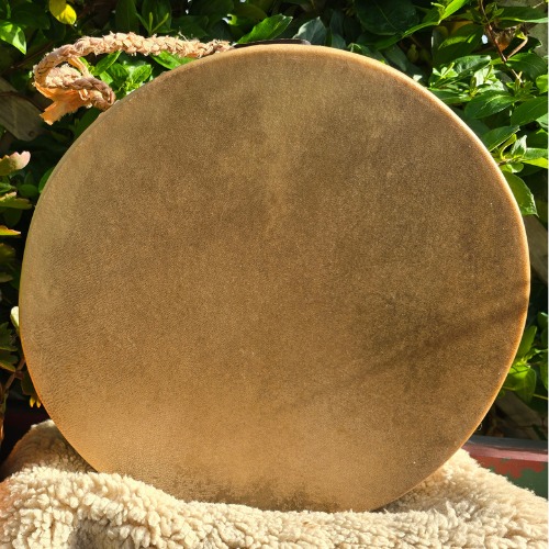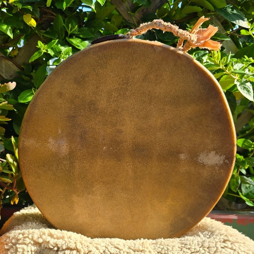 Featuring a goat hide on both sides and a soft, sandy-coloured silk-wrapped handle, this drum is as soothing to hold as it is to hear. The gentle shifting of beads inside mimics the sound of rolling waves, creating a meditative, rhythmic oceanic hum.